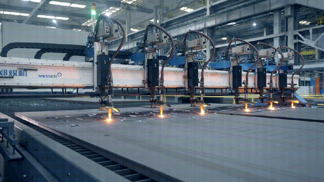 结合工业物联网(IIoT)、传感器、智能分析、云计算等技术,园区通过实时数据采集、远程监测和智能分析等手段,实现多种类、多型号的物流设备实时交互和协同作业。调度系统可实现对不同类型、不同尺寸和重量物料的统一调度,打通了从料场到切割区、板加区、焊接区再到交付区的全工序链物流调度,覆盖40多道加工工序、100多个生产工位。